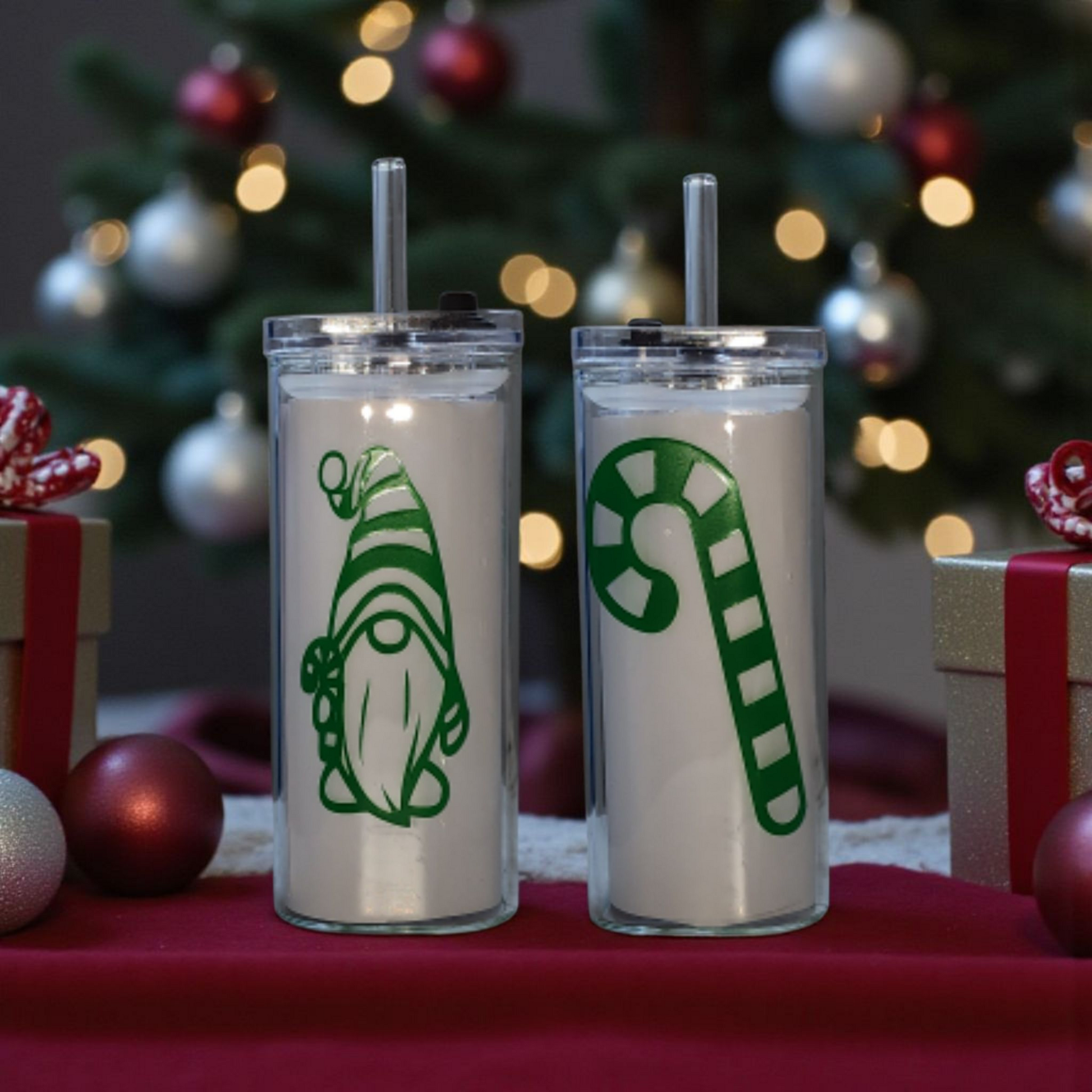 13.5 oz Glass Square Cup with Glass Straw. Design only on two sides. Good for hot or cold drinks.