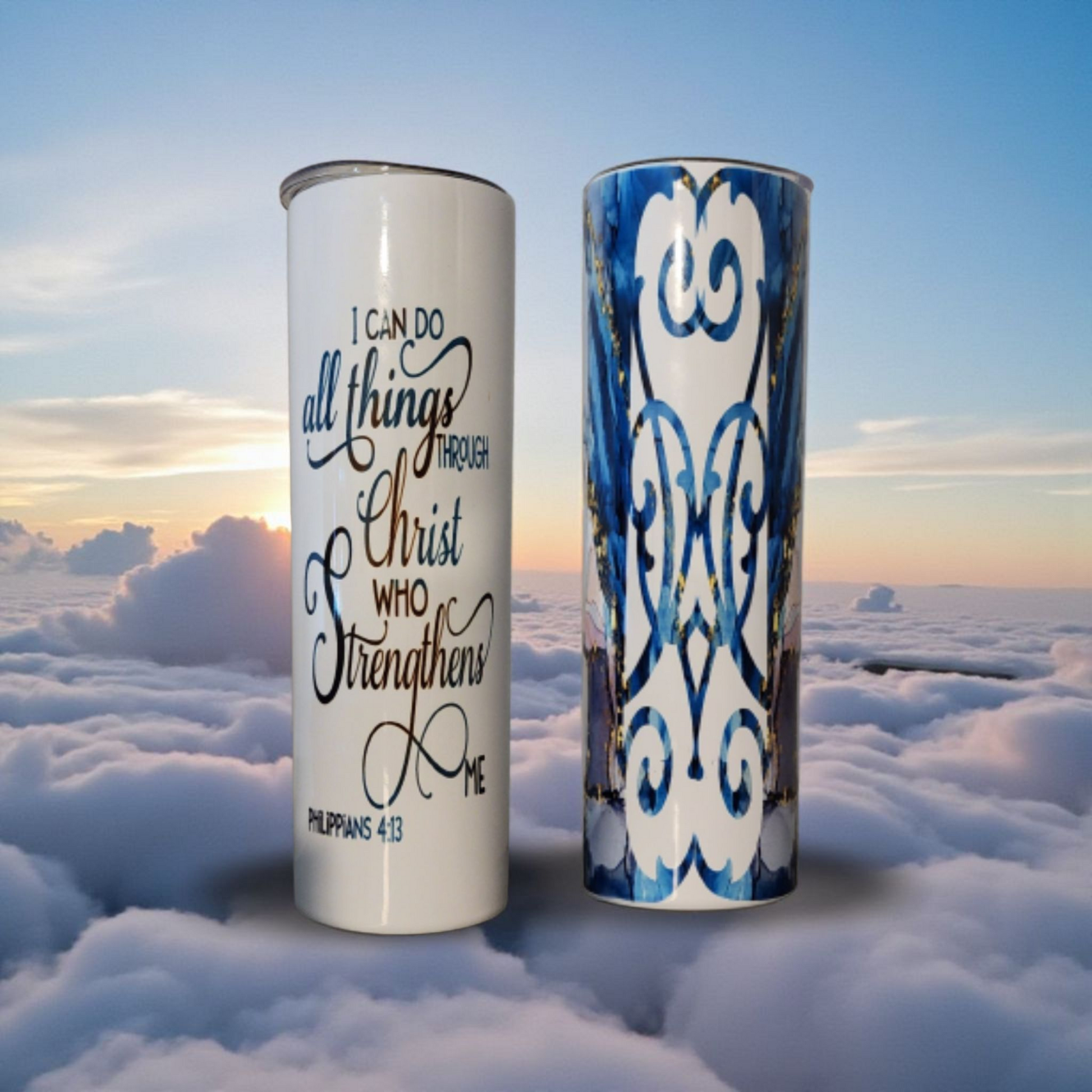 30 oz Stainless Steel Tumbler. Philippians 4:13 scripture with design