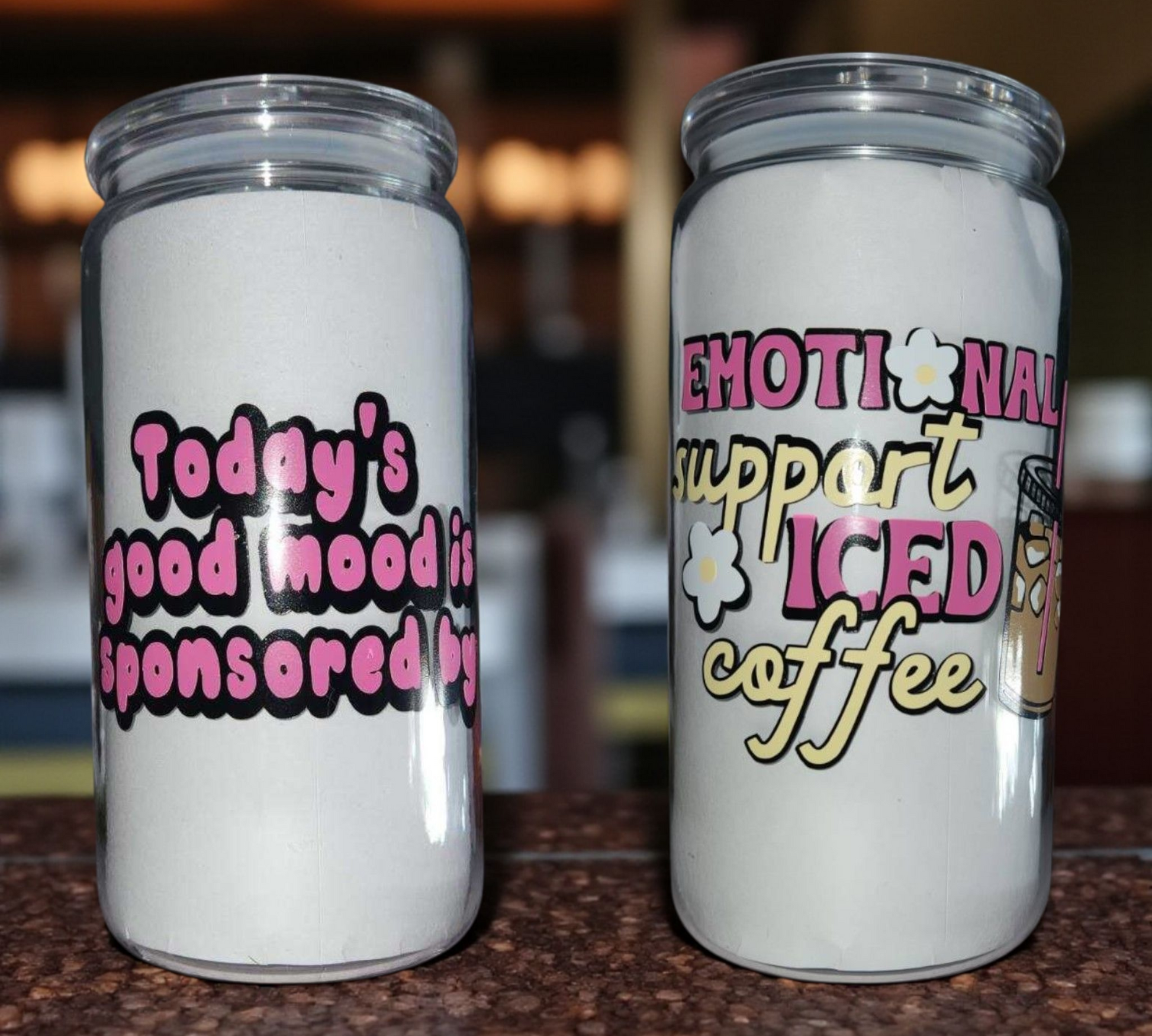 "Today's good mood is sponsored by Emotional support iced coffee"