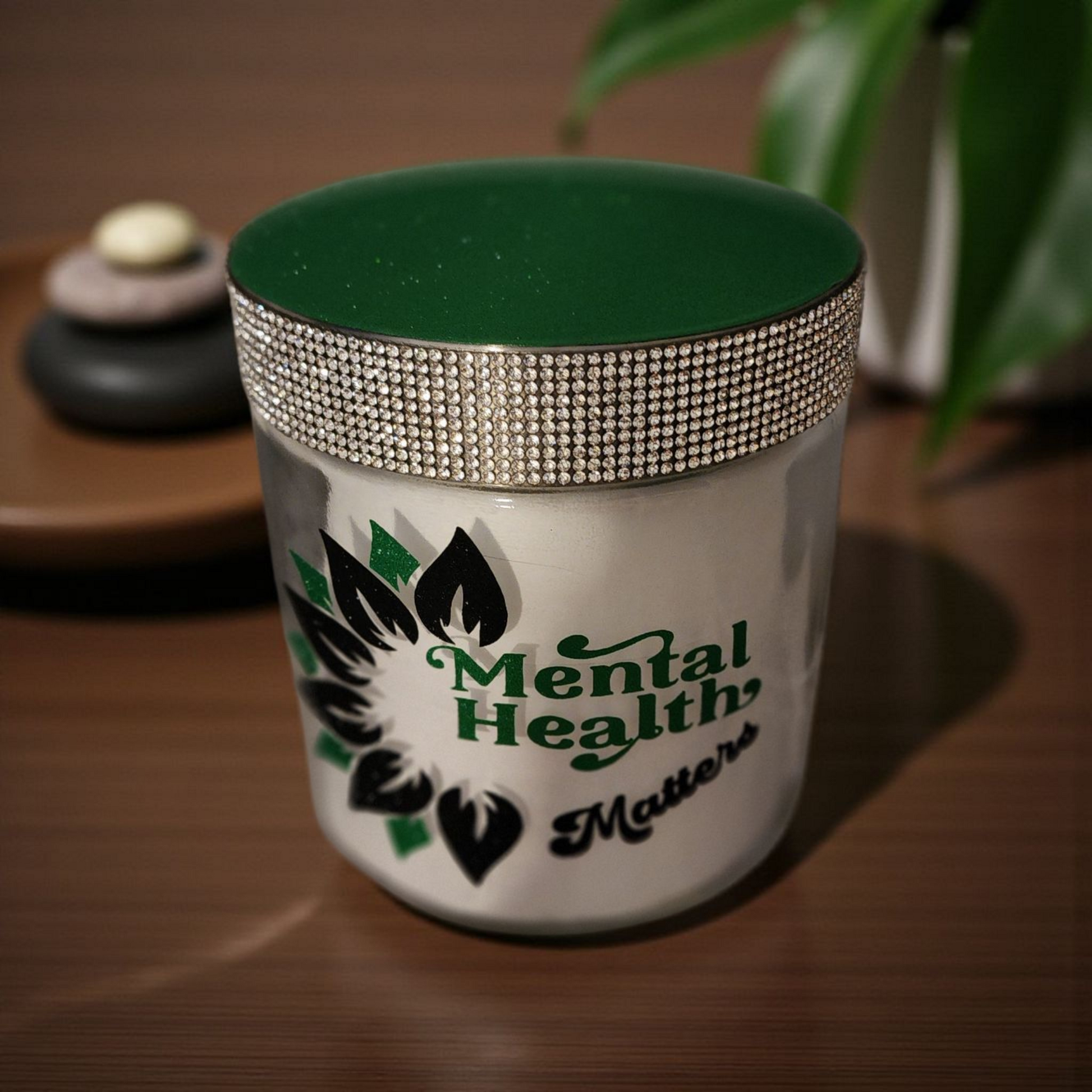 Glass Jar with Rhinestone Perimeter on Screw Off Lid. Design on both sides.