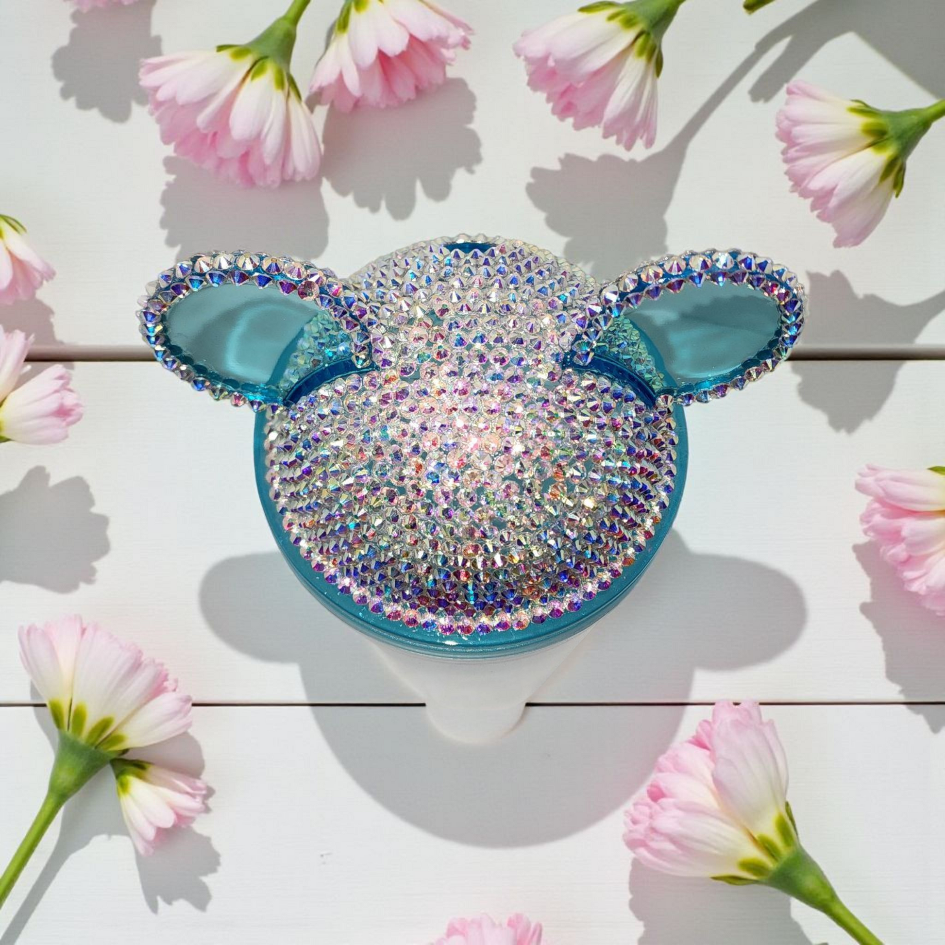 Blue Acrylic Mouse Ear Cup. The top has rhinestones.